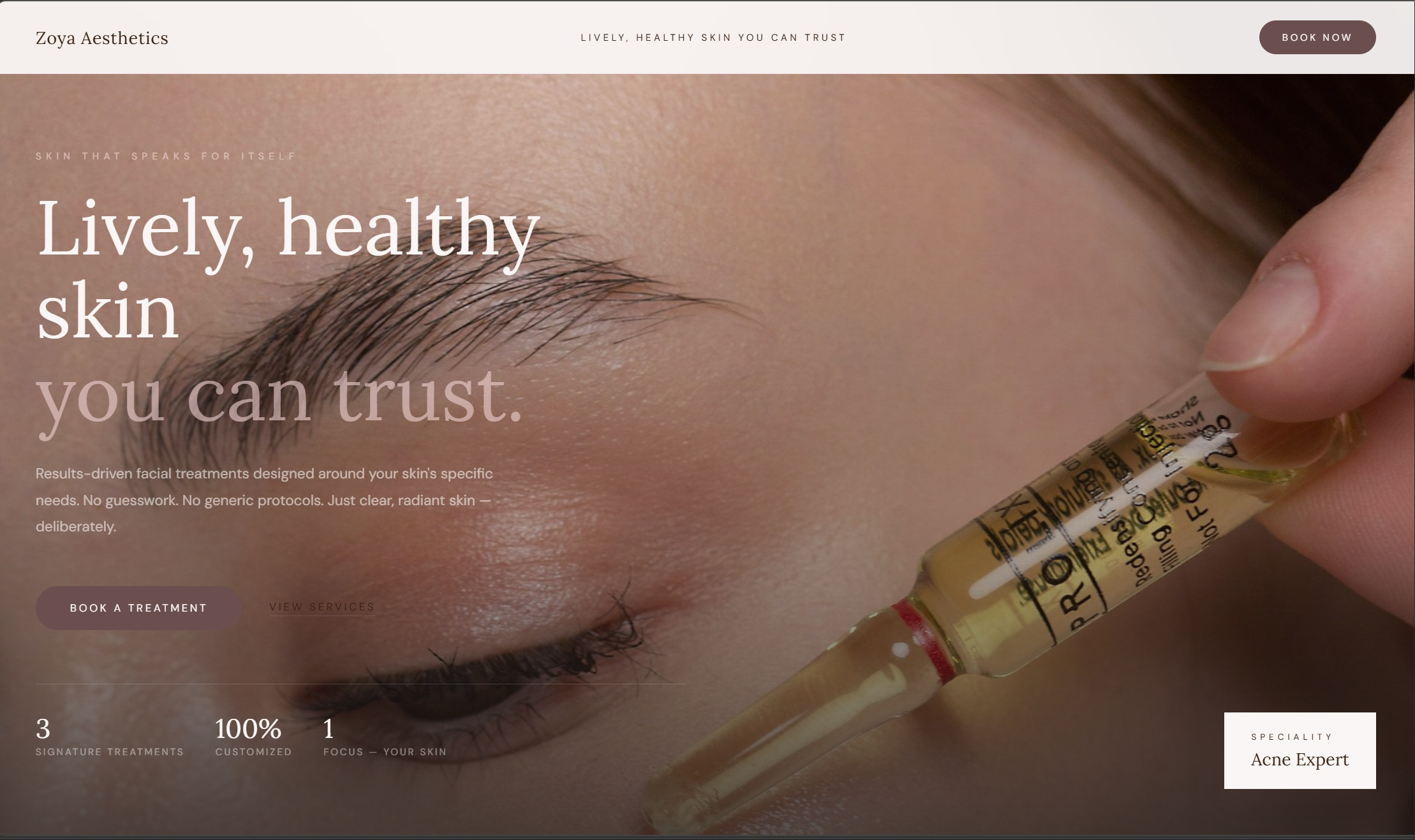 Zoya is a precision skincare studio designed to feel as credible as the results she delivers.